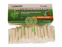 Pastillas anti-espuma para utilizar tras la desinfección del sistema de aspiración de equipos dentales. Se utilizan poniendo una dosis en el filtro del soporte de cánulas, de esta forma prolongan la acción desinfectante y evita la formación de espuma. Son mejoradas por la adicción de un desinfectante de amplio espectro (Bronopol), para conseguir la desinfección continua desde el filtro de los tubos de aspiración de los equipos dentales hasta el desagüe. Incorpora también silicona para evitar la formación de espuma y las consiguientes averías de los vasos separadores y el sistema de aspiración en general. Contiene 50 unidades.
