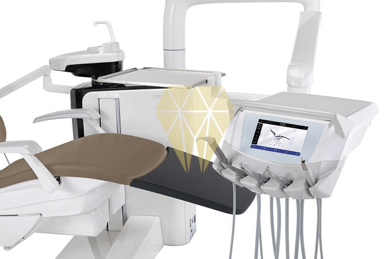 El modelo con mangueras colgantes ofrece una solución extraordinariamente compacta y elegante, proporcionado amplios espacios al equipo médico para que pueda trabajar con gran comodidad. La bandeja doctor alcanza todas las posiciones en torno a la zona operativa y la flexibilidad de la bandeja auxiliar permite intervenir a dos o a cuatro manos. Esencial para acompañar cada intervención.