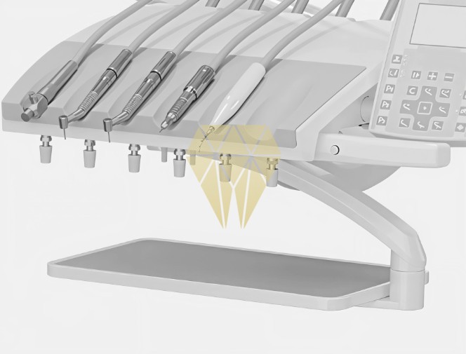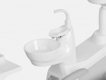 La bandeja del asistente puede girarse 180°, con espacio reservado para la lámpara de fotopolimerización. Su brazo giratorio aporta mayor flexibilidad para el trabajo a cuatro manos, facilitando la coordinación durante el procedimiento.