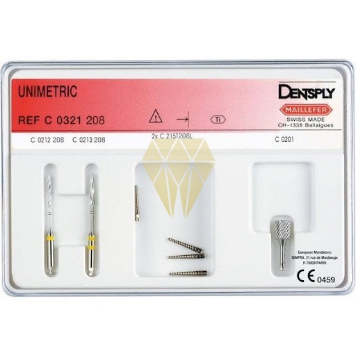 1 fresa Penetración 208 C0212 - 2081 fresa Calibración 208 C0213 -2082 postes Unimetric Titanio 208L C215TL- 2081 Llave C0201