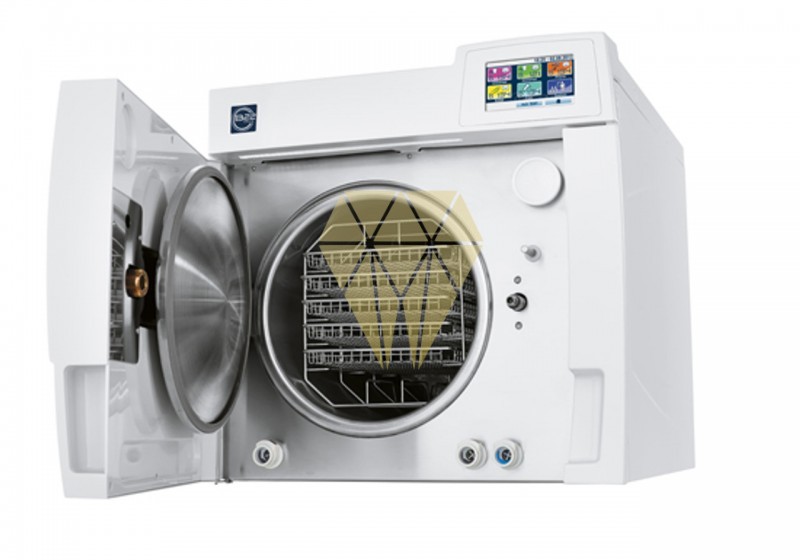Autoclave Futura de clase B que funciona con agua del grifo. Capacidad de la cámara de acero inoxidable de 17 litros. Autoclave con ciclos clase B según norma EN 13060. Depósitos de agua inspeccionables con sensor de calidad de agua integrado.