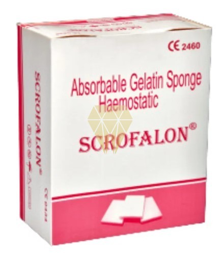 Esponja gelatinosa, hemostática, aséptica, absorbente y absorbible. De gran utilidad en la cavidad alveolar tras la extracción dental. No provoca reacción adversa o hipersensibilidad. Puede utilizarse en combinación de antibióticos u otros medicamentos sin reducir su capacidad hemostática. Medidas esponjas de 10 x 10 x 10 mm, envasadas individualmente.100 esponjas.