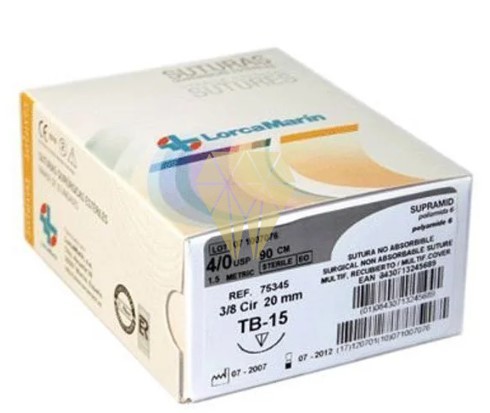 Sutura sintética no absorbible.Aguja 3/8 círculo triangular. TB - 15 20 mm. Longitud de hebra 90 cm. EP 3. USP 4/0. 12 unidades.TIPO: Monofilamento torcido recubierto, con aspecto monofilar.COMPOSICION: Poliamida 6.COLOR: Negro.REACCIÓN TISULAR: Ninguna.VIRTUDES: Sutura sintética no absorbible. Elevada resistencia a la tracción, superficie suave y atramática, mínima capilaridad, gran manejabilidad.