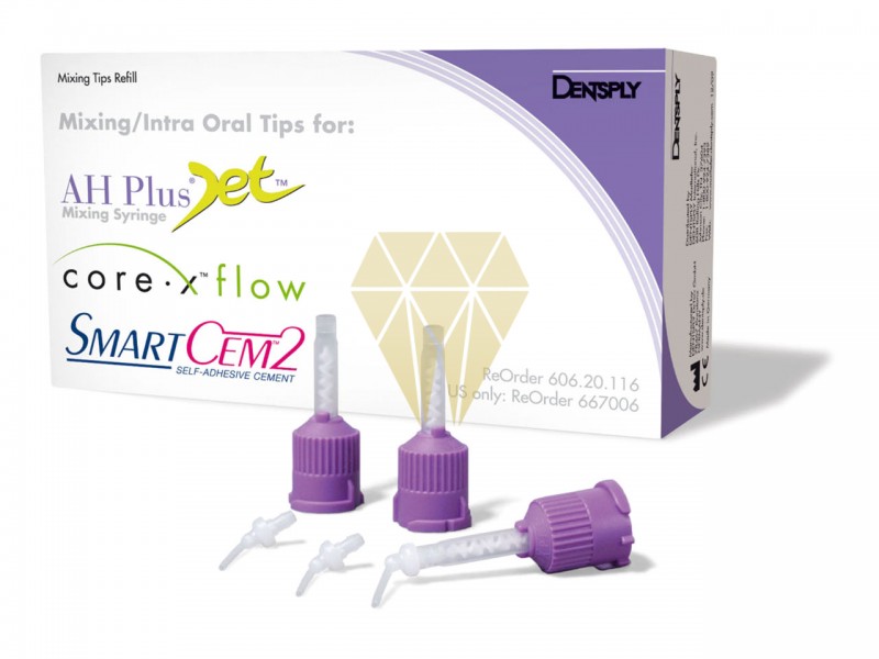 Las puntas Ah Jet Plus para la jeringa de AH Plus Jet se utiliza sobre todo como aplicación intra-oral directa, y ofrece una mayor precisión, comodidad y rapidez, además de no desperdiciar material. Es una resina para el sellado permanente de conductos radiculares a base de epoxi-amina. De manejo sencillo, excelentes propiedades físicas, baja contracción y solubilidad, alta biocompatibilidad, radiopaca. Presenta una adecuada fluidez y es apropiado para cualquier método con puntas, técnicas de condensación y guttapercha condensada con el calor. Contiene 40 puntas de mezcla y 40 puntas intraorales.
