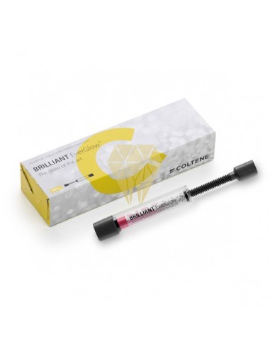 Reposición en Jeringa de Brilliant EverGlow composite híbrido submicrónico de última generación, de uso universal muy fácil con sobresaliente pulido y excelente estabilidad del brillo y color, ideal para el sector anterior y buen rendimiento en posteriores. Disponibles opcionalmente tonalidades opacas y translúcidas para estratificar.