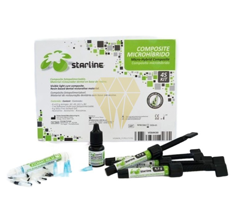 Composite microhibrido para anteriores y posteriores fotopolimerizable. Tecnología de nanorelleno. Combina la resistencia de un híbrido y el pulido de un microfil. Poco sensible a la luz ambiental. Fácil de modelar y alto brillo. Radiopaco y con liberación de flúor.Contiene:• 4 jeringas de 4,5 g: A2, A3, A3.5 y B2.• 7 ml de Adhesivo multi-usos fotocurable para dentina/enamel.• 1 jeringa 4 g de Gel grabador con ácido fosfórico al 37%.• 5 puntas dispensadoras.• 15 pinceles aplicadores.• 1 espátula-porta pinceles.• 2 Mezcladores.