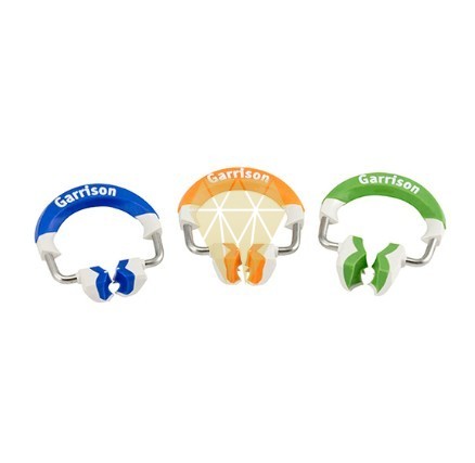 El sistema de tres anillos de Composi-Tight 3D Fusion está compuesto por un anillo corto (azul), un anillo alto (naranja) y un anillo separador para preparaciones anchas (verde). Todos ellos cuentan con las puntas de silicona Soft-Face que reducen los movimientos y con las extensiones de retención Ultra-Grip que evitan que el anillo se descoloque.