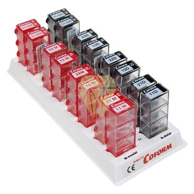 Las Matrices Coform se utilizan tanto para restauraciones de ángulo como para restauraciones compuestas alrededor de los bordes incisales difíciles y fracturas. Existen varios tamaños para piezas del sector anterior, caninos y primeros molares. Están hechos de plástico de celuloide y no se adhiere al material compuesto. Se ajusta fácilmente a la dentición, Distal de tamaño 11.