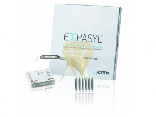 Sistema de retracción gingival atraumático, rápido y práctico.Sin anestesia, 2,5 minutos. Dispensado con pistola. Expasyl es un sistema de retracción gingival innovador y atraumático. Expasyl le ofrece la seguridad de obtener un acceso a los límites cervicales anatómicos reales, sea cual sea el tratamiento a realizar. Tras la retracción con Espasyl, obtendrá un campo clínico limpio e ideal para realizar una toma de impresión perfecta. Expasyl reemplaza las técnicas tradicionales, a menudo traumáticas, aportando las siguientes ventajas: 1. Separa la encía marginal del diente sin dañar la ligadura del epitelio, eliminando los riesgos de recesión gingival y de reabsorción ósea. 2. Permite obtener un campo clínico exento de cualquier desangramiento o supuración. 3. El sistema de apertura de los surcos es fiable, rápido y práctico. 4. Garantiza una retracción regular y reversible de la encía, sin traumatizar los tejidos y sin la necesidad de utilizar anestesia. 5. Aplicación sencilla y rápida para el facultativo e indolora para el paciente. El tiempo de trabajo total no excede de dos minutos y medio para una apertura surcular de calidad. 6. Pasta de alta viscosidad con propiedades astringentes y hemostáticas. 7. Dispensado del material con pistola.