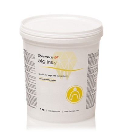 Detergente específico con pH neutro. S utiliza para la limpieza y eliminación de los residuos de alginato de todos los tipos de cubeta e instrumentos. Se compone de 1 bote de 1 kg + medidor.