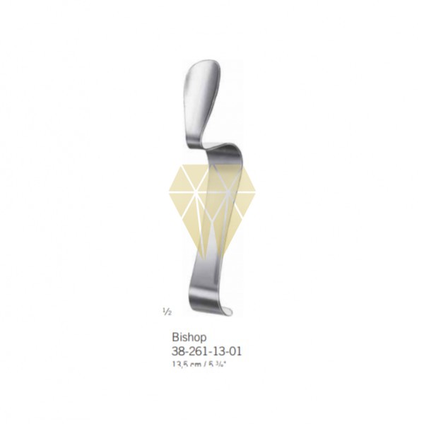 Separador Bishop KLS Martin de 13,5 cm. de longitud. Ligero y cómodo gracias a sus bordes romos. Ideal para separar labios y lengua. En caso de abordaje quirúrgico posterior en mandíbula la lengua queda cómodamente separada. Envase.- 1 unidad.