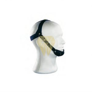 Para corregir las maloclusiones de Clase III con prognatismo mandibular. Casco y tracciones elásticas regulables y mentonera de piel natural preformada para adaptarse a todas las tipologías faciales.Color azul.