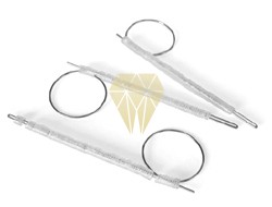 Listas para usar. Montadas en un dispositivo que facilita su dispensado. Ahorro de tiempo. Transparentes. Tamao mediano ( interno de 1,3 mm). Presentación: cajas de 1.000 unidades (20 bastones de 50 ligaduras).