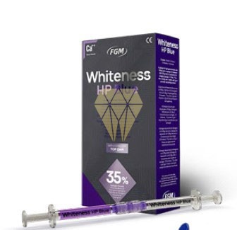 Blanqueador dental a base de peróxido de hidrógeno al 35% para uso en consultorio. Sistema de jeringas acoplables, aplicación única por sesión: Ph estable y alcalino, menor índice de sensibilidad. Conjunto de jeringas( espesante y gel blanqueador) con 1,2 gr de gel al total, 1 jeringa de top dam con 1 1 gr, 1 dispositivo de acoplado de las jeringas y puntas.