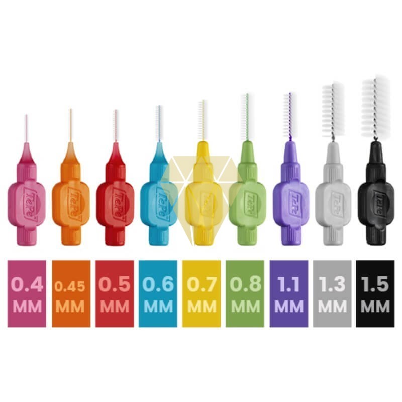 cepillo interdental con filamentos de tynex, de alta calidad, que permite en una limpieza eficaz. Calidad superior. El alambre de acero está recubierto de poliuretano para un uso seguro. Mango ergonómico, recto, que facilita movimientos seguros y controlados. Disponible en diferentes grosores para cubrir las necesidades de cada individuo y cada espacio interdental. Supera las pruebas de calidad de la normativa ISO para cepillos interdentales. El color del mango ayuda al paciente a identificar y recordar el tamaño que usa.
