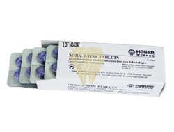 Pastillas de masticar para visualizar el sarro dental y motivar el cuidado en el paciente. - Distingue con seguridad el sarro dental nuevo del viejo. - El sarro viejo cambia a color azul, el más nuevo se pone de color rojo-lila. - fácil eliminación mediante cepillado dental normal. - Libre de eritrosina. - Color comestible puro y aprobado.