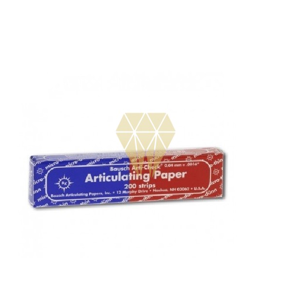 Papel BK 80. Azul/Rojo. 40 μ. 200 Tiras. Los papeles de oclusión Bausch ultrafinos de 60 micras son papeles delgados y resistentes a la rotura, cubiertos por ambos lados con colores líquidos. Estos papeles tienen, una propiedad de marcación muy precisa por su bajo grosor. Este papel precortado se deja colocar fácilmente sin pinzas ni aditamentos de mordida.