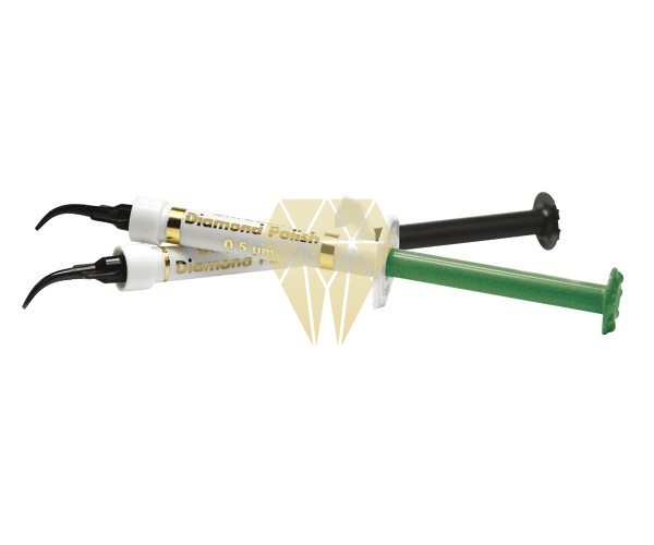 Pasta pulidora diamantada.Contiene partículas microcristalinas de diamante para un pulido con resultados estéticos insuperables.Aplicación con cepillos de pelo de cabra o ruedas de fieltro.Refrescante sabor a menta.?2 - 1,2 ml (1,41 g) de Diamond Polish Mint en jeringas.